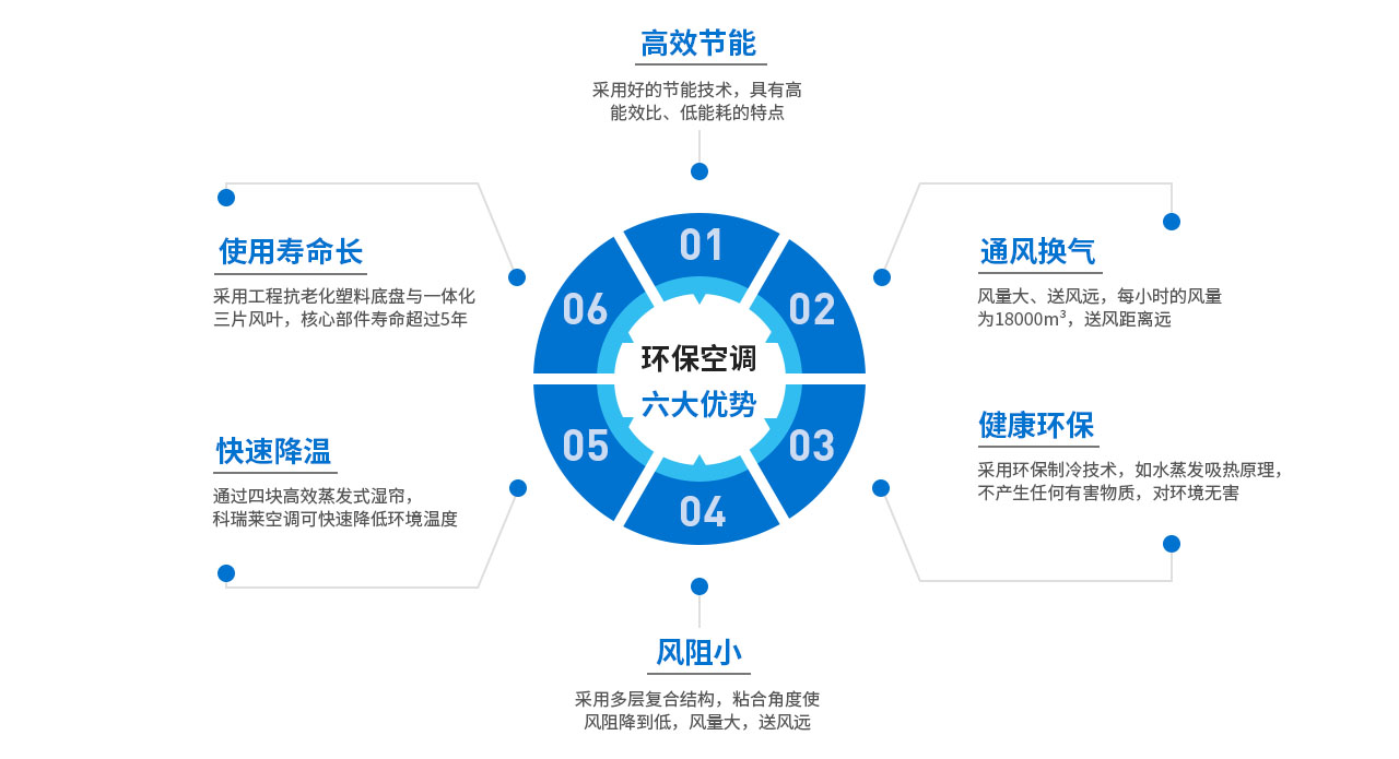 - 空气质量好:集通风、换气、除尘、降温于一体,增加空间含氧量,提高工作效率,整体送风或岗位送风随意选择。