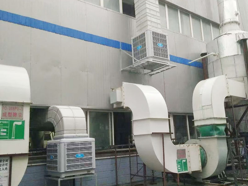 经过对厂房现场勘测后,河南朗旗团队给的降温方案是环保空调方式进行通风换气降温,改善室内空气状况。车间使用32台环保空调,从而达到通风、换气、防尘、降温的效果。
