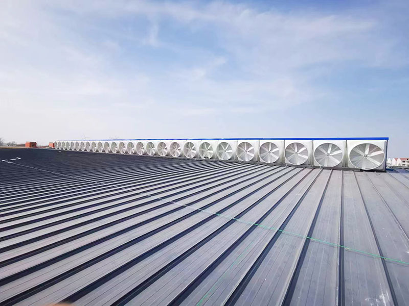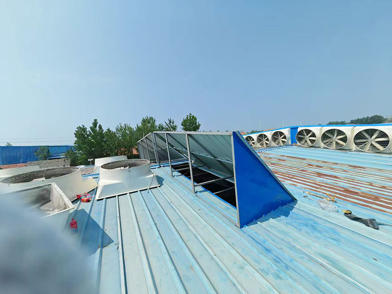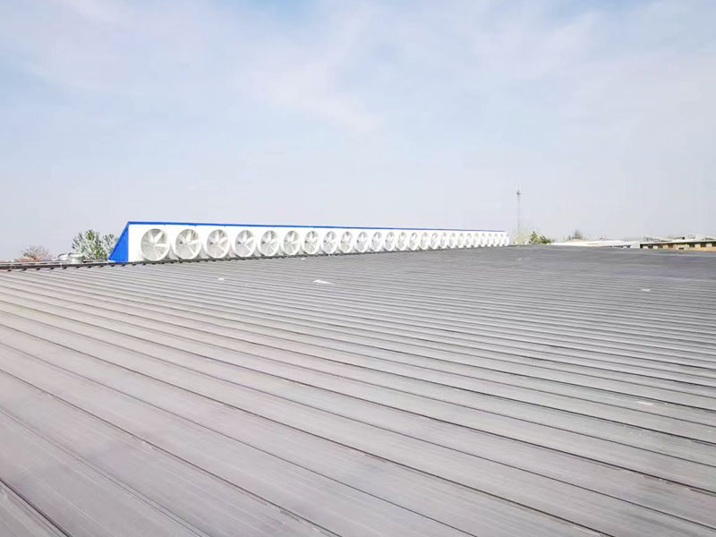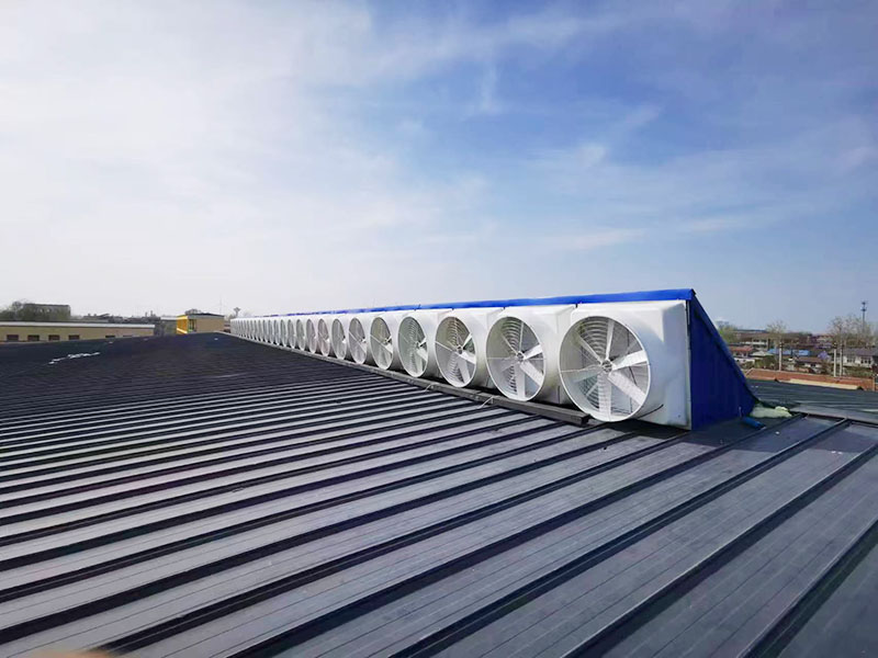 新鹏泰牛总通过网络找到了河南朗旗公司,经过前期通过详细的了解以及沟通,确定了设备的选型和安装方式,新车间二楼安装LQ-1460负压风机,负压风机开启后室外的新风源源不断的送进车间,室内热空气源源不断排出室外。彻底的解决了高温,不通风以及闷热的难题。
